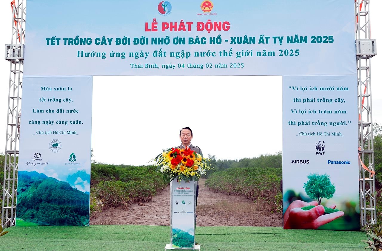 On the morning of February 4, at Thai Thuy Wetland Nature Reserve (Thai Thuy, Thai Binh), the Ministry of Natural Resources and Environment (MONRE) coordinated with the People's Committee of Thai Binh province to organize the launching ceremony of "Tree Planting Festival to forever remember Uncle Ho" and respond to World Wetlands Day 2025. Member of the Party Central Committee, Minister of MONRE Do Duc Duy chaired the ceremony.