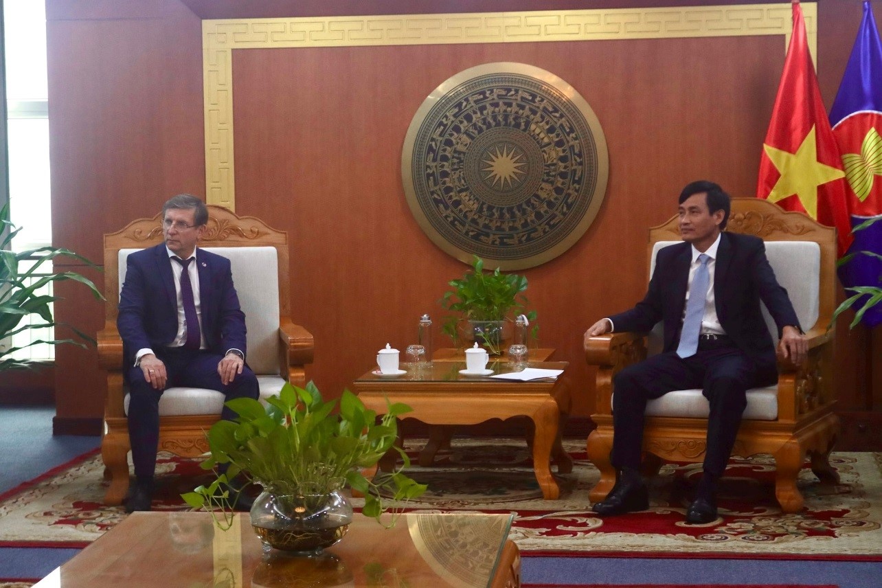 Deputy Minister of Natural Resources and Environment Tran Quy Kien and Mr. Vitalievich Shumskiy, Director of the All-Russian Institute of Geology and Mineral Resources of the World Ocean.